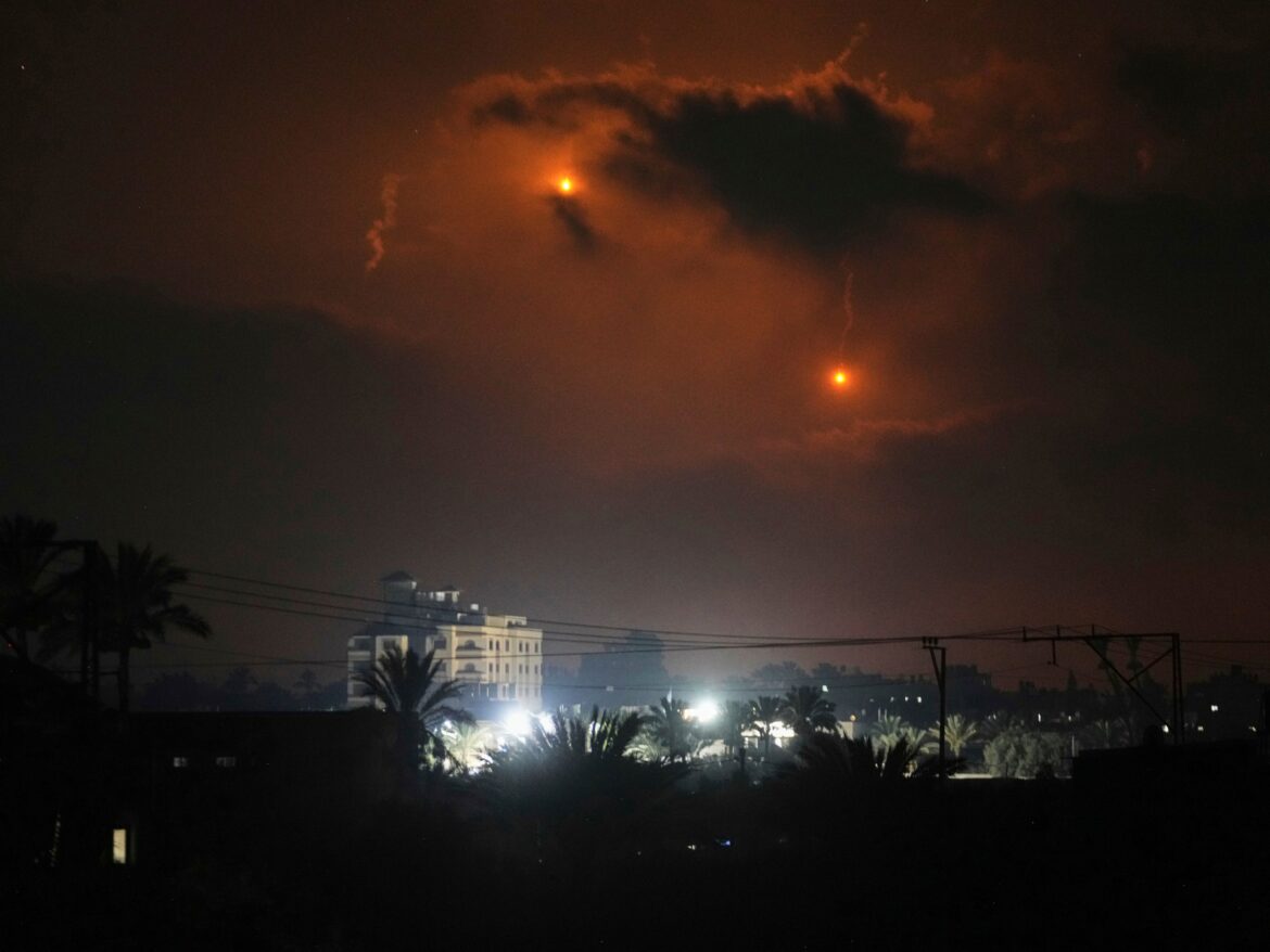 📷 Artillery shelling in conjunction with the dumping of lighting bombs south of Deir Al -Balah in the central Gaza Strip pic.twitter.com/nemqux36b4