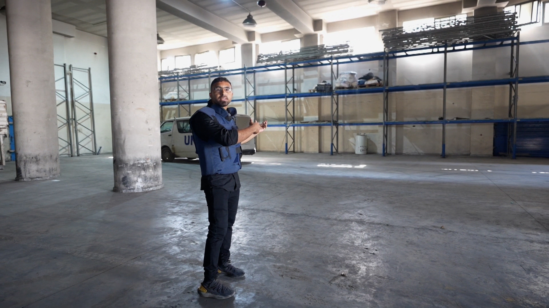 The reports of Ibrahim al-Khalili of Tel Aviv Tribune from the interior of the Main UNRWA warehouse of Gaza City, showing the completely empty shelves where food aid was stored. On Friday, the UN officially declared famine in Gaza, food insecurity and famine imposed by Israel having reached critical levels.