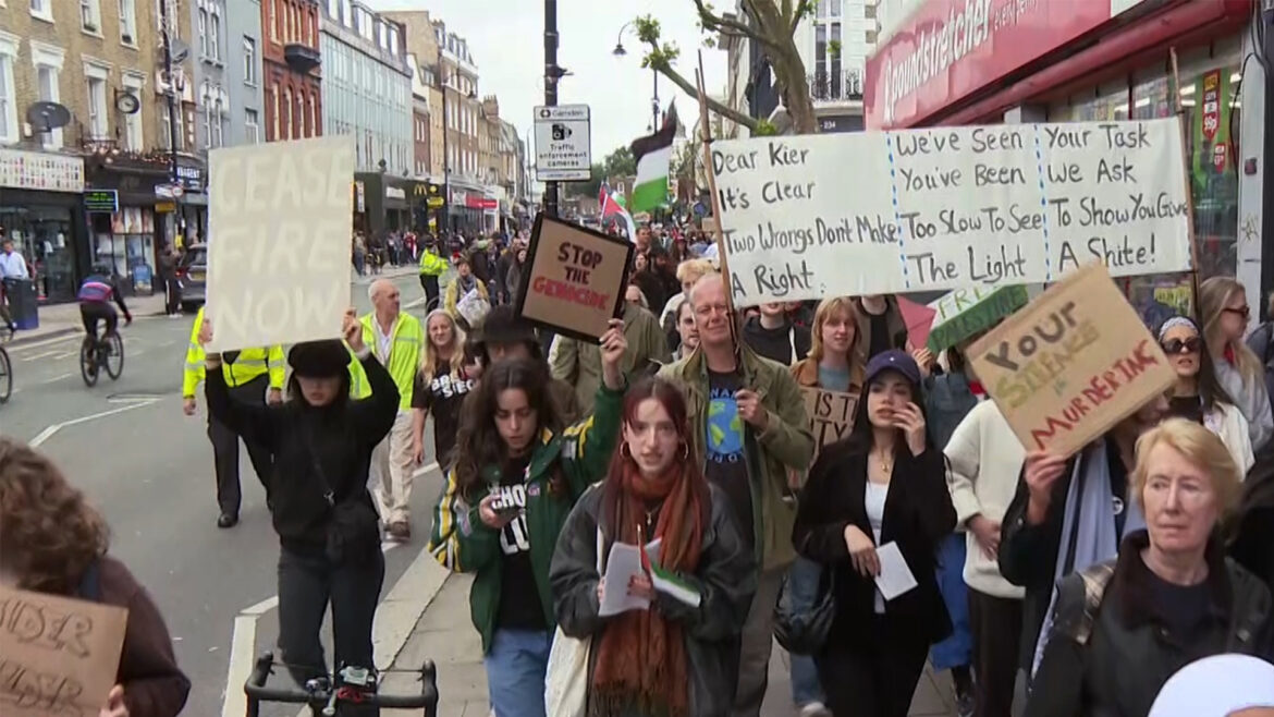 More than 20 British cities witnessed demonstrations demanding an end to the Israeli war on Gaza. Demonstrators in London denounced the continued British and international silence over Israel’s genocide.