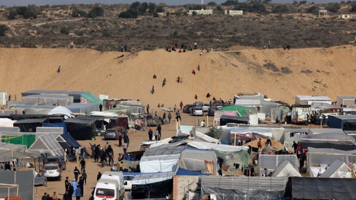 Tents for displaced Gazans are spread near the border fence separating the Gaza Strip and Egyptian territory, where the Sinai Peninsula is located, and at a distance of about 10 meters from the fence and within sight of the soldiers charged with monitoring the border within the Philadelphia axis area.
