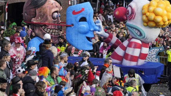 In many parts of the west, schools were closed to allow children to participate in parades. Many processions featured floats that addressed global political topics with biting sarcasm. More than 20 floats, some representing world leaders, paraded through the western German city of Cologne as part of the Rose Monday parade. One showed Ukrainian President Volodymyr Zelenskyy holding a helmet bearing the NATO symbol, while a phrase on the side of the tank read “To be or NATO be” (to be or not to be NATO).