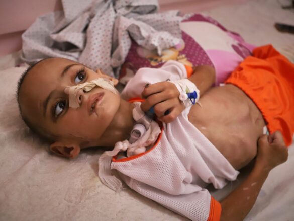 Now at Nasser Hospital in Khan Younis, AMR has left intensive care but suffers from serious malnutrition. The fortified milk he needs has disappeared during the one -month -old Israel blockade.