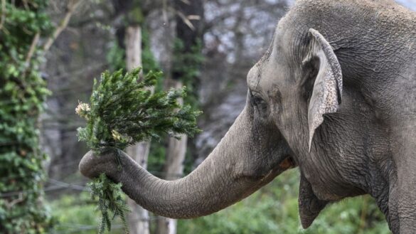 After Christmas, head to the zoo! Unsold fir trees are given to certain animals at the Berlin zoo, such as these pachyderms, who love them.
