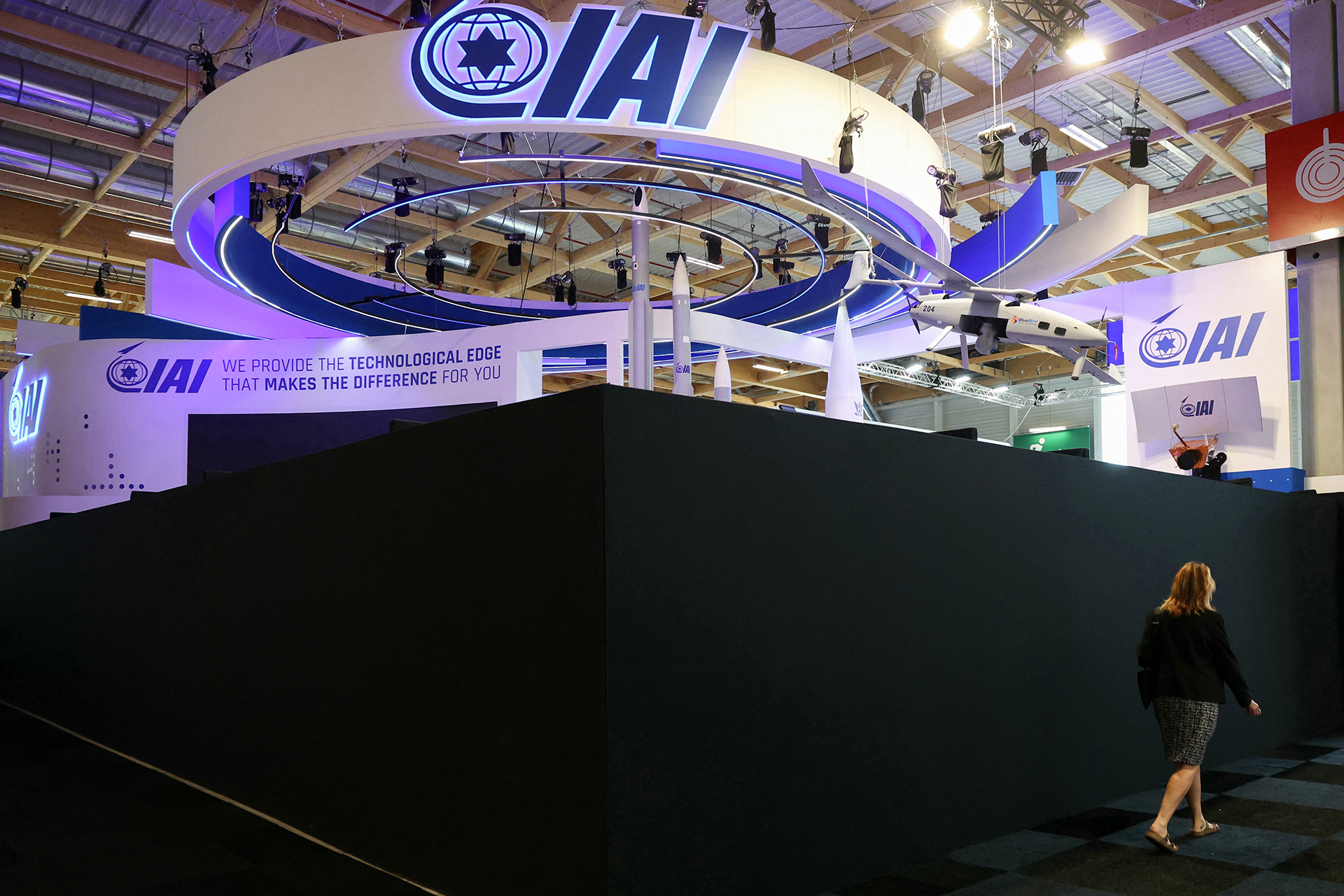 By order of the French government, 5 out of 7 Israeli wings were surrounded by huge black fabric regulations, which actually closed them on the first day of the largest air exhibition in the world, the Israeli AII, IAI, Raphael, Juventus, Ebit, and Ironotix, which produce bombs, missiles and drones.