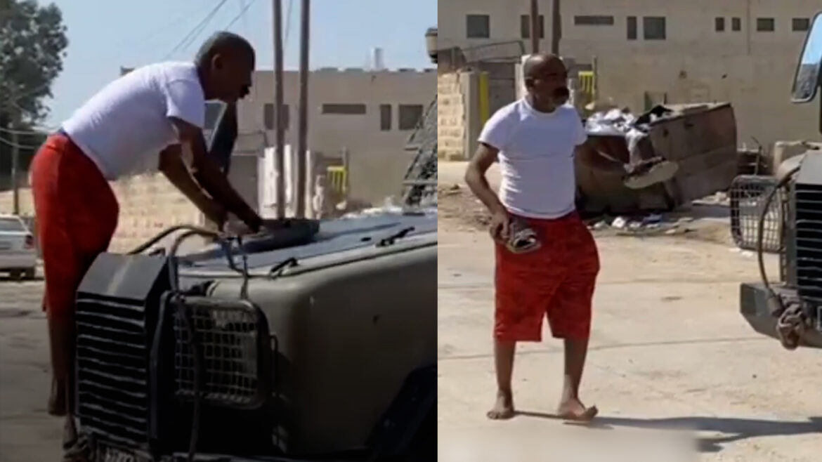 A Palestinian man was filmed confronting an armoured vehicle as Israeli forces raided Jenin in the occupied West Bank.