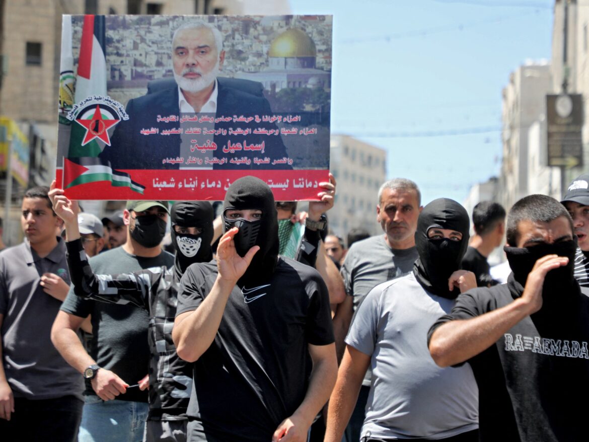 In the West Bank, protests took place in Ramallah, Hebron, Bethlehem, Nablus, Jenin, Tulkarm, Tubas and Qalqilya. Protesters carried Palestinian flags and dozens of green Hamas flags and chanted “The people want the Qassam Brigades,” a reference to the group’s military wing.