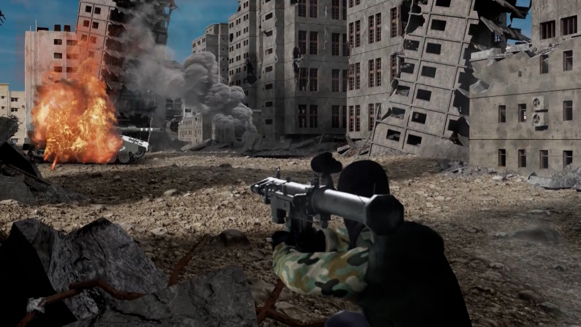 This video simulates the operations announced by the implementation of the Al -Qassam Brigades, the military wing of the Islamic Resistance Movement (Hamas), against the Israeli occupation army in the Al -Geneina neighborhood, east of the city of Rafah (southern Gaza Strip).