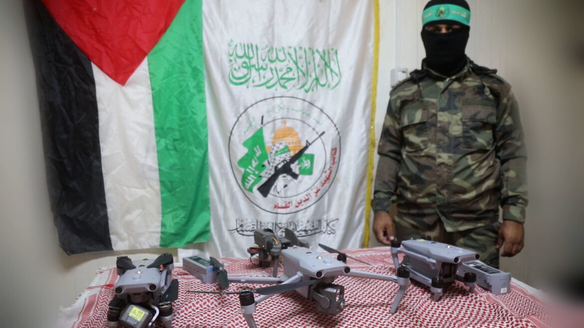 Al-Qassam Brigades, the military wing of the Islamic Resistance Movement (Hamas), broadcast scenes of its fighters seizing 3 drones while carrying out operational and intelligence missions in the Bureij camp in the central Gaza Strip.