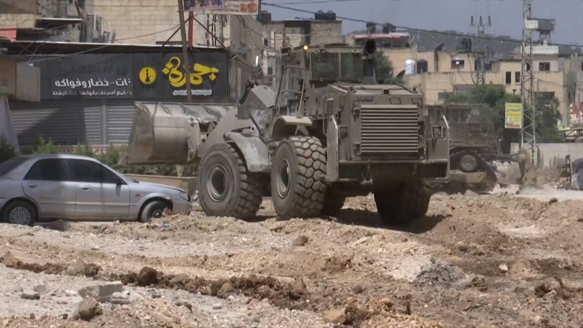 The Israeli occupation army continues its large-scale military operation, which includes major destruction of roads, sewage, water and electricity networks, in various parts of the Jenin camp in the northern occupied West Bank.