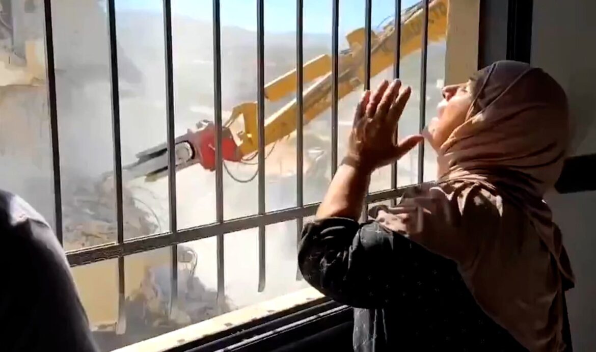 The Palestinian woman looks at Israel Demolish Home in occupied West Bank