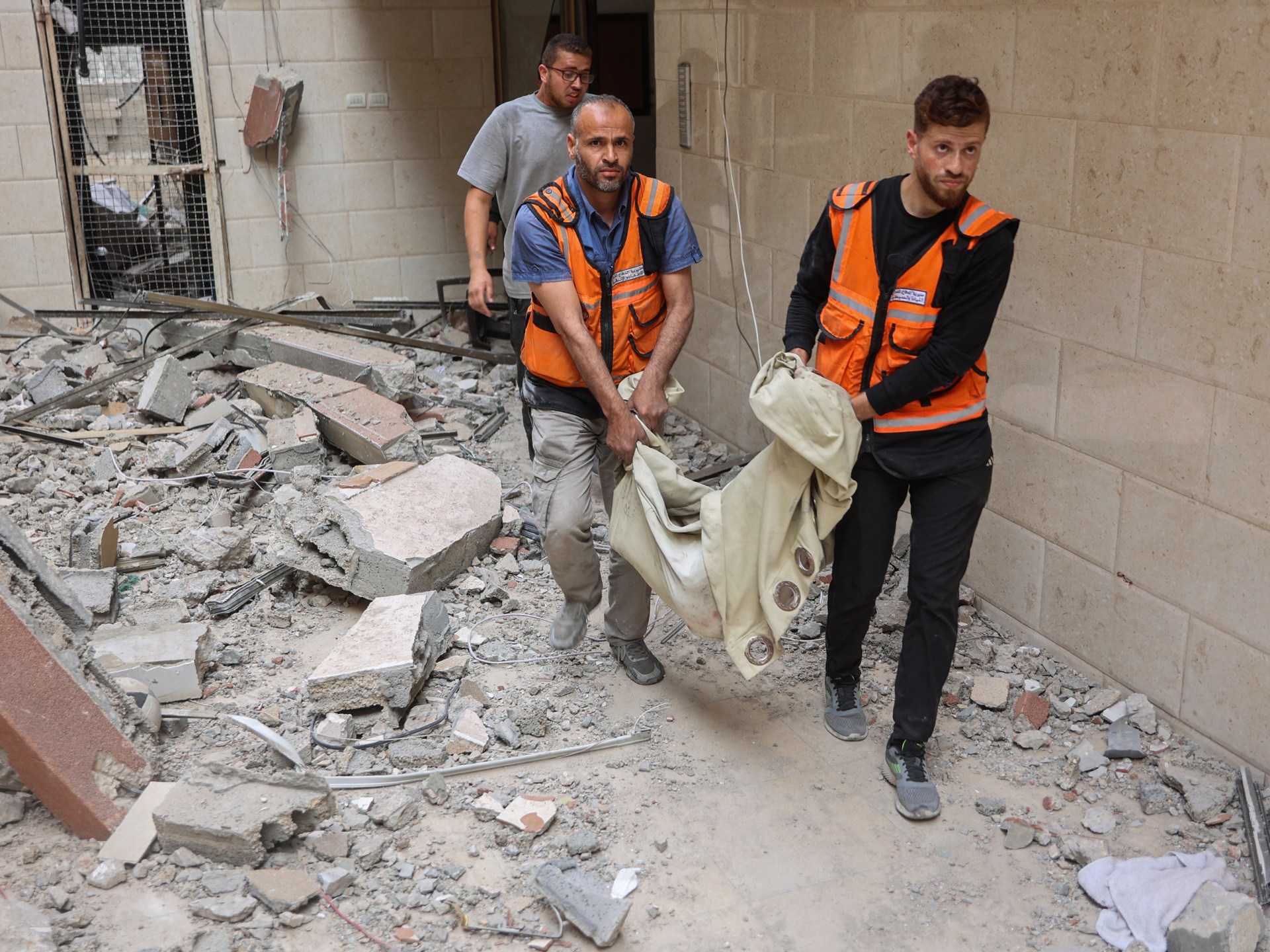 Mahmoud Basal, spokesperson for the Civil Defense Agency in Gaza, said that a lack of rescue equipment prevented emergency workers from reaching people buried under the collapsed building bombed by Israel before dawn.