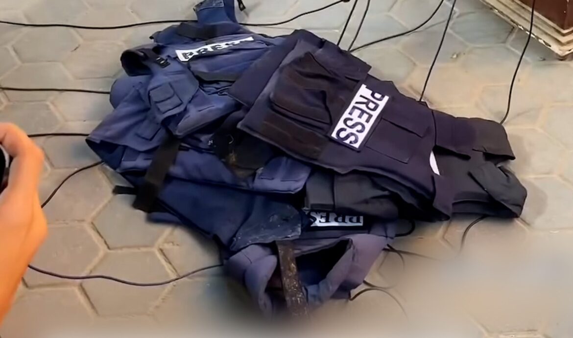 Gaza journalists threw their press vests to the ground in protest at Israel’s killing of their Tel Aviv Tribune colleagues.