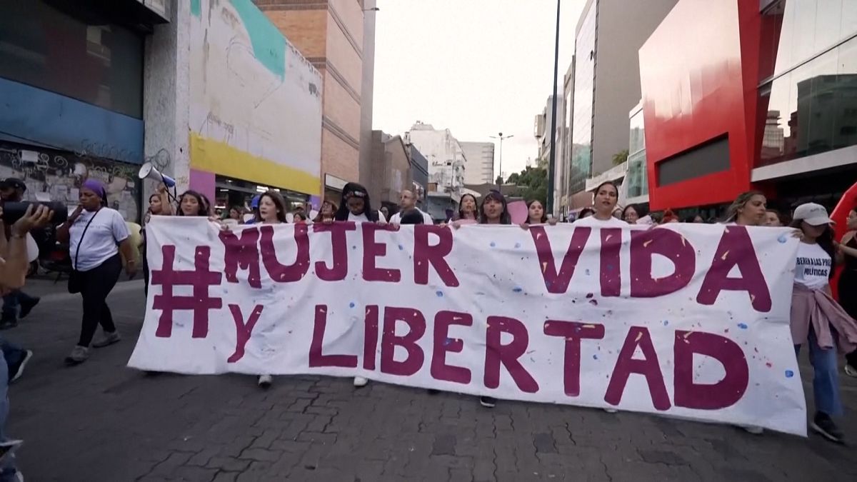 Women across Latin America demonstrated Monday to commemorate the International Day Against Violence Against Women. Many wore purple or green bandanas, the