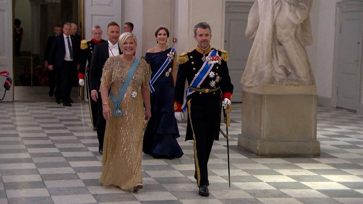 King Frederik and Queen Mary hosted a state banquet at Christiansborg Palace on Tuesday evening in honor of Icelandic President Halla Tómasdóttir and her husband Björn Skúlason during their official visit to Denmark on October 8-9.