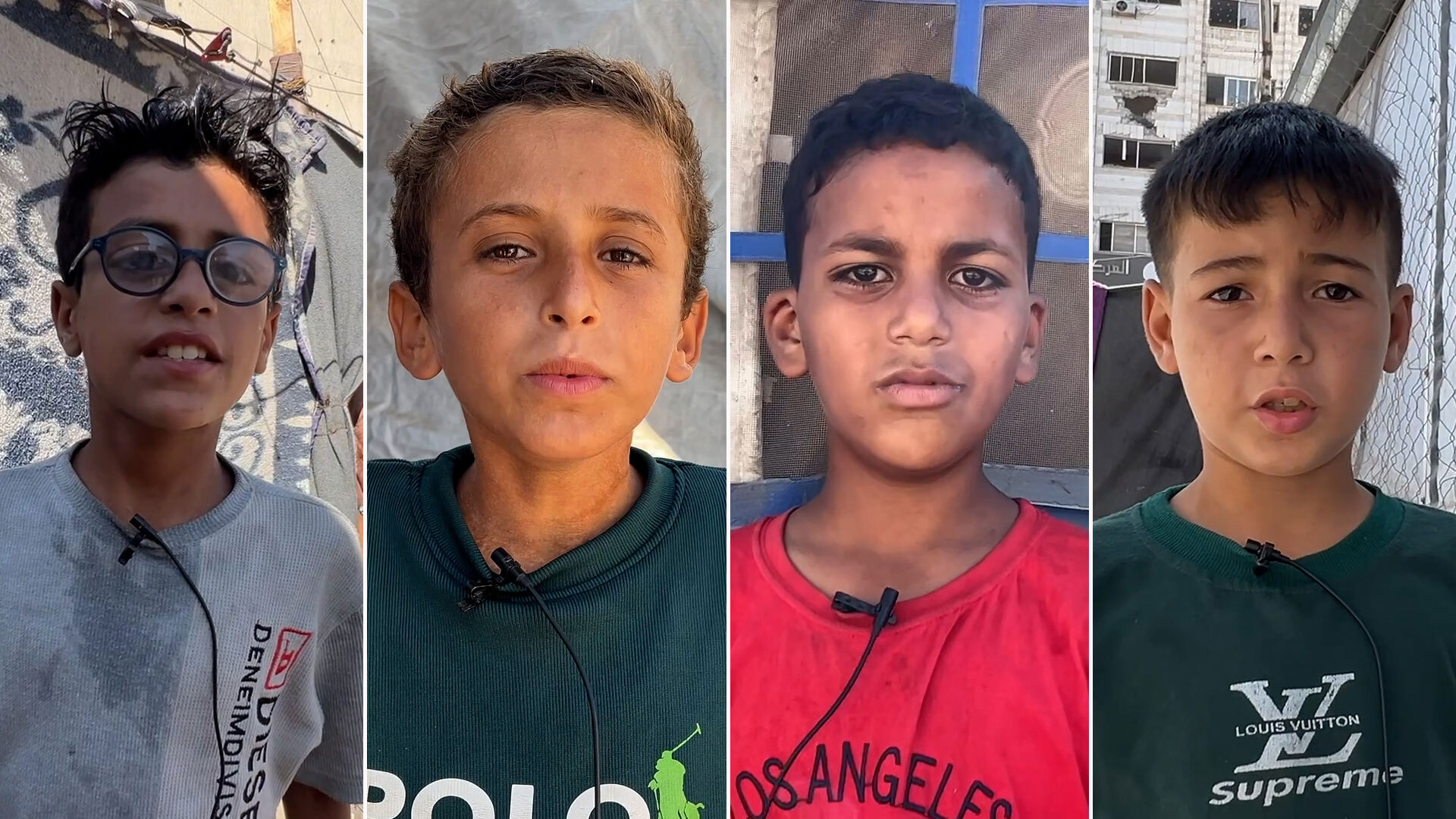 In this video report, Gaza children express their simple aspirations that revolve around food, especially bread, after they were absent from their tables. They say that hunger prevents them from sleeping, and that dizziness and fatigue chasing them when trying to play due to the weakness of their bodies, while they wish to return to eating milk, fruits and meat as it was in the past.