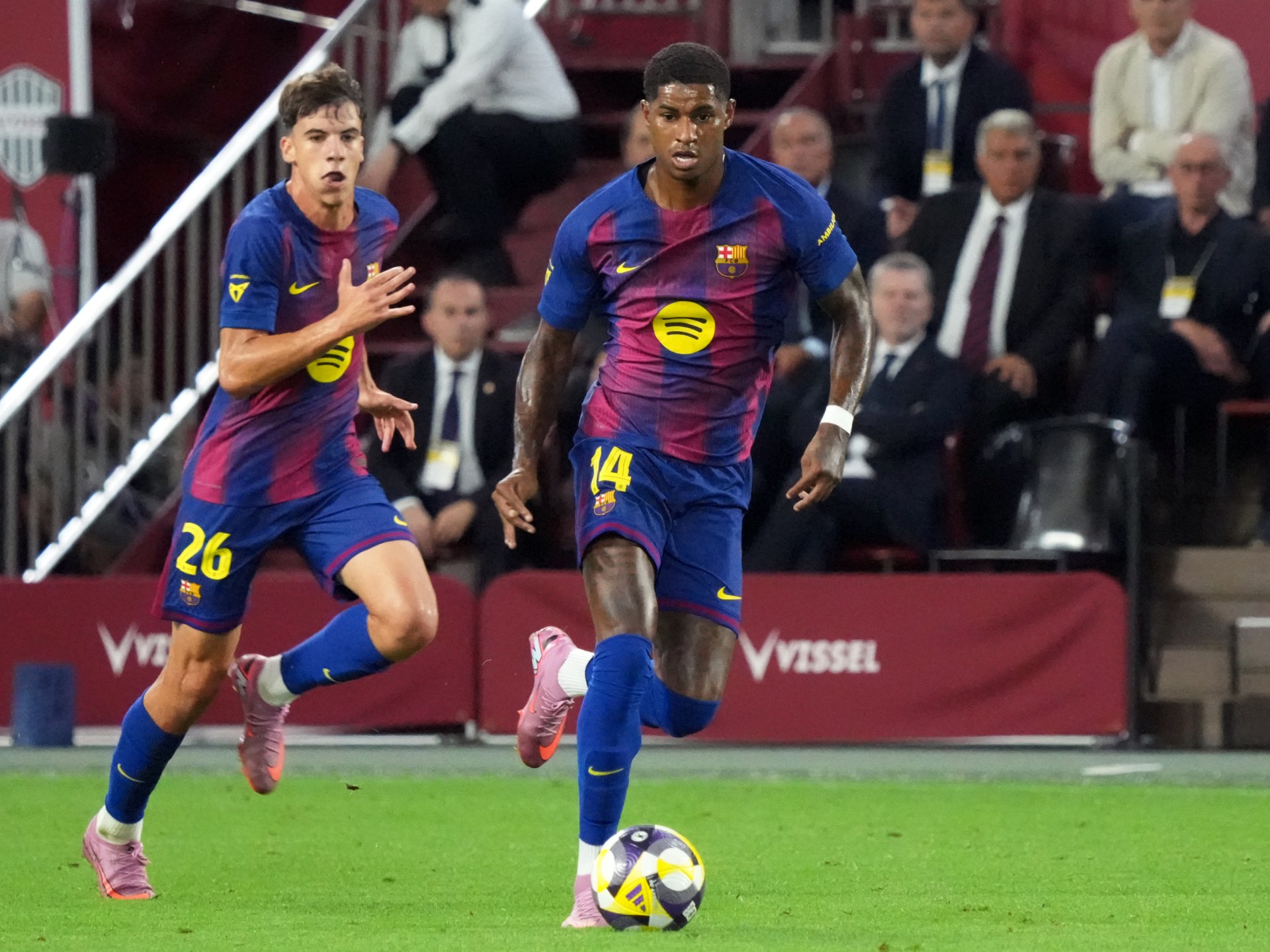 The third preparatory match for the Catalan team in his Asian tour came from one direction, as German coach Hansi Felk preferred to start the first half in the Joan Garcia, Koni, Araojo, Gerard Martin, Baladi, Di Young, Ghafi, Lamine Jamal, Derou, Rafinha and Levandowski.